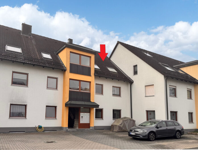 Die Eigentumswohnung erstreckt sich über das gesamte Dachgeschoss des 1958 …