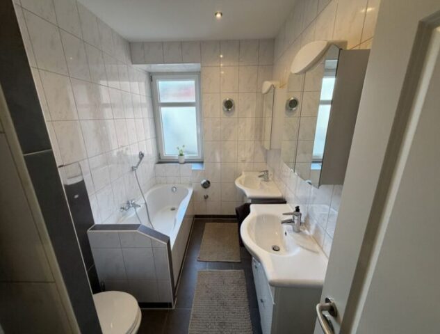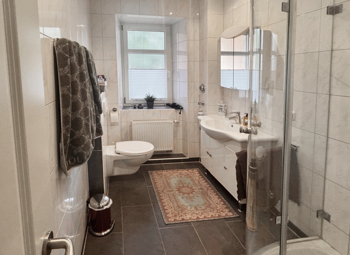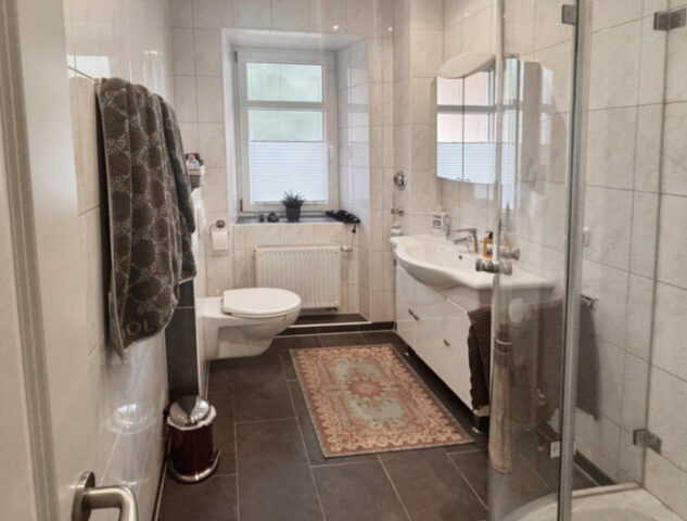 Die Wohnung liegt im 1. OG und bietet eine Wohnfläche von ca. 100 m². Die helle 4‑Zimmer‑Wohnung mit Balkon hat neben zwei Tageslichtbädern einen funktionalen Grundriss und eine hochwertige, gepflegte Ausstattung. Die vorhandene Einbauküche samt Elektrogeräten ist im Kaufpreis enthalten. Zur Wohnung gehören ein zusätzlicher Abstellraum mit Waschmaschinenanschluss außerhalb der Wohnung, ein eigenes Kellerabteil sowie die Gartenmitbenutzung.