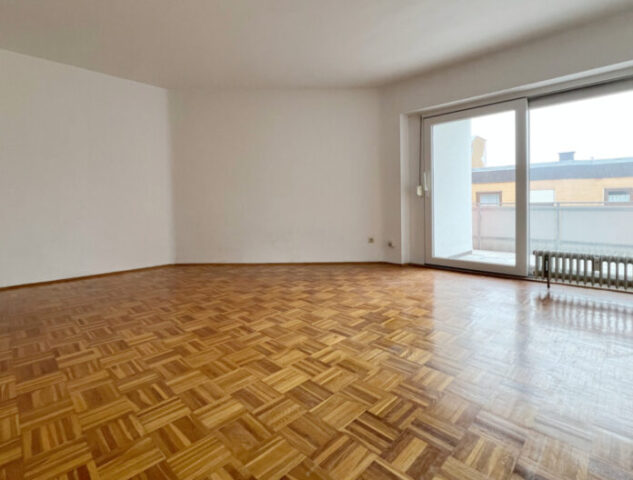 Das Herzstück der Wohnung bildet das weitläufige Wohnzimmer mit Echtholzparkettboden. Von hier aus gelangen Sie sowohl auf die Loggia als auch in die Küche (ohne Einbauküche) und zu den Schlafzimmern. Zusätzlich zum hellen Tageslichtbad mit Wanne verfügt die Wohneinheit über ein separates WC. Für ausreichend Stauraum steht ein Einbauschrank im Flur sowie ein eigener Kellerraum bereit.